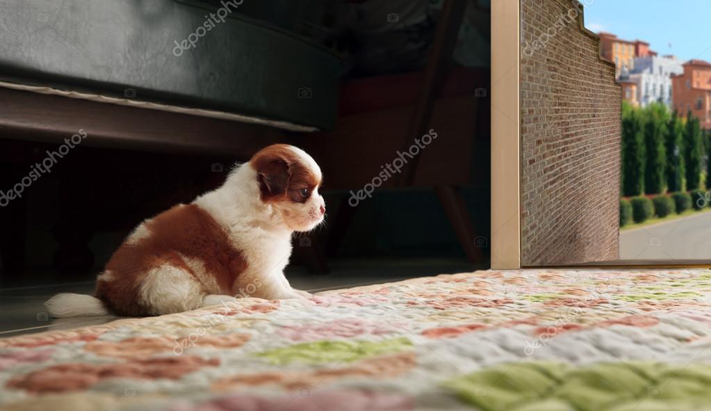Adrable Baby Shih Tzu Puppy Dog Sitting In Front Of Home Door An Stock Photo By C Khunaspix 40826011